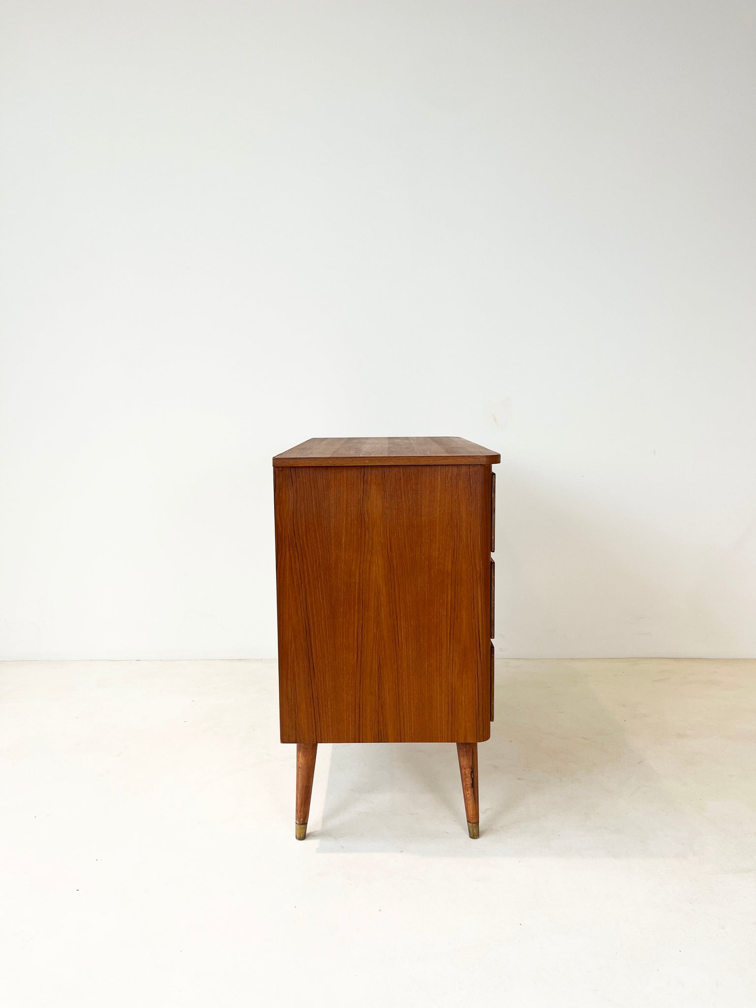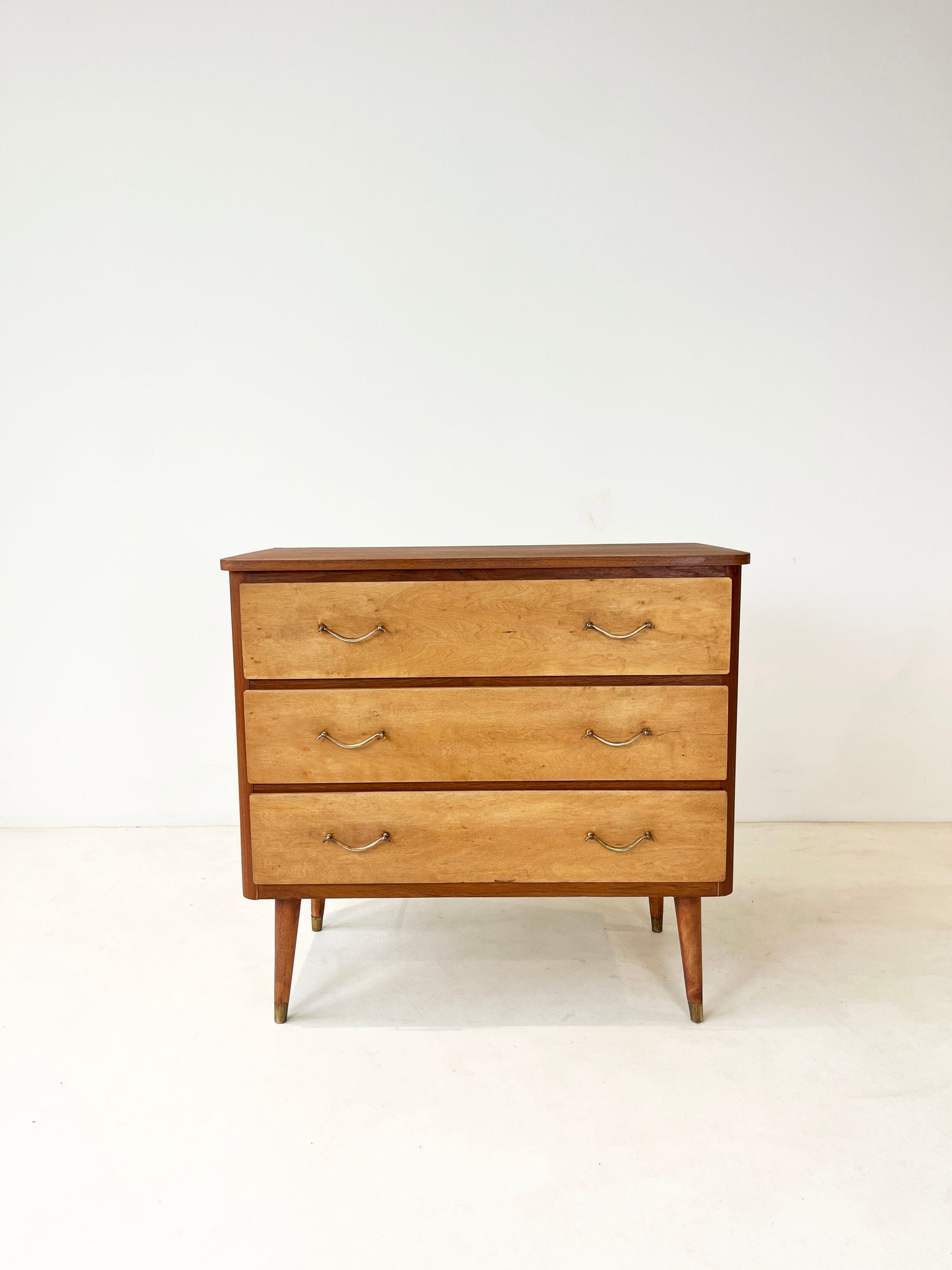 Prachtige en unieke tweekleurige (teak en berken) vintage ladekast, zorgvuldig gerestaureerd)