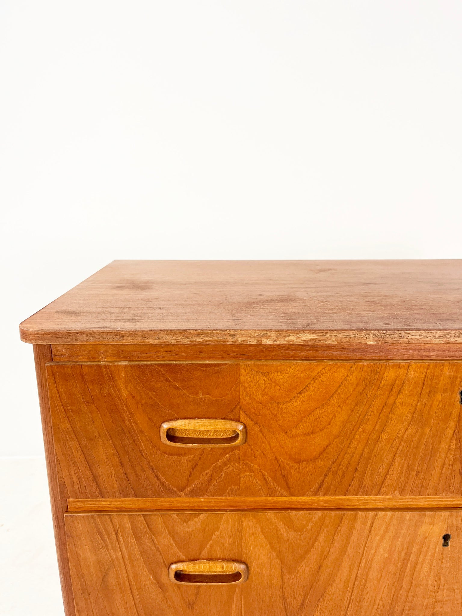 Klassieke teakhouten ladekast uit Zweden. De bovenkant heeft wel wat vlekjes, te zien in de foto's.