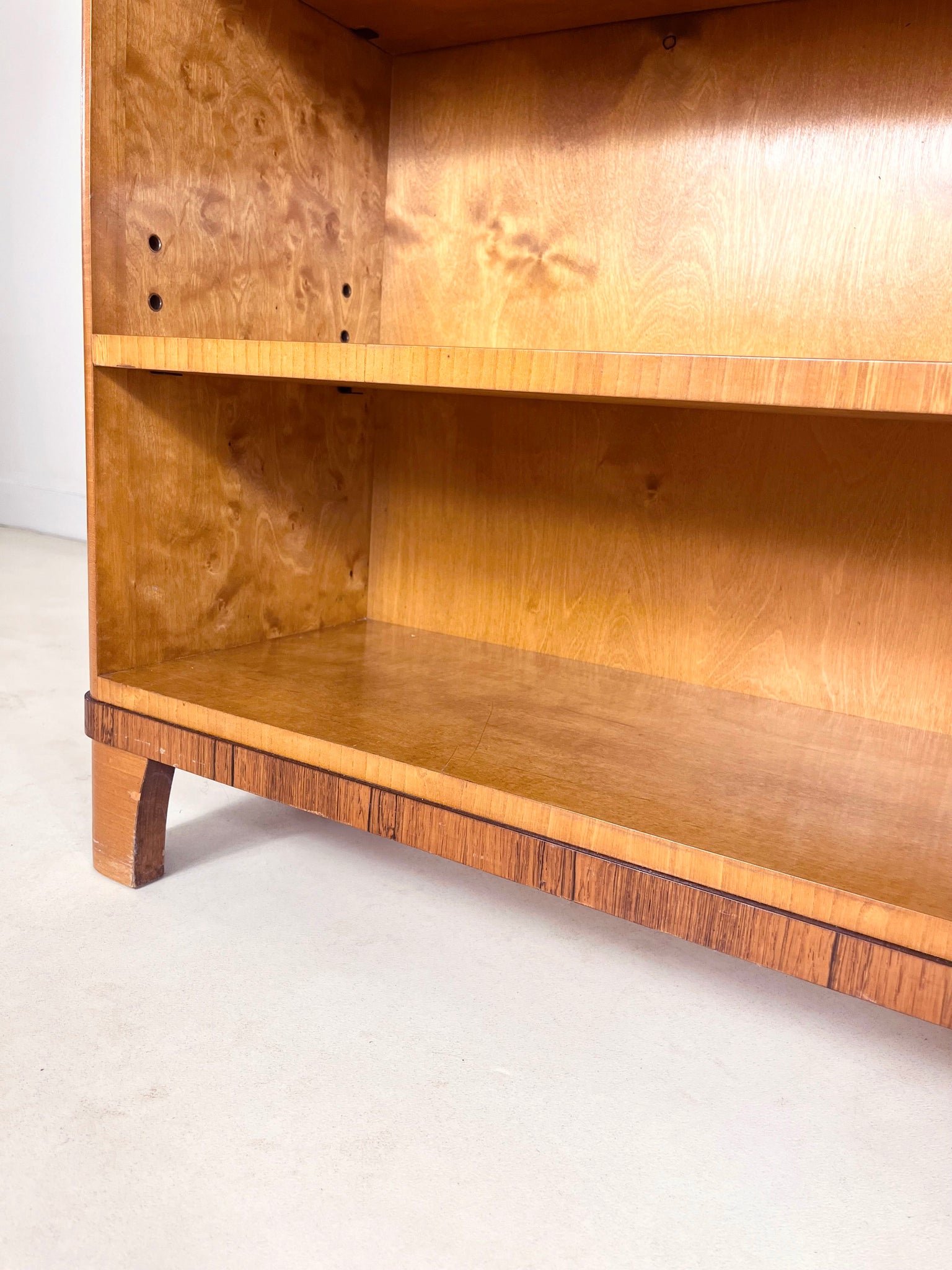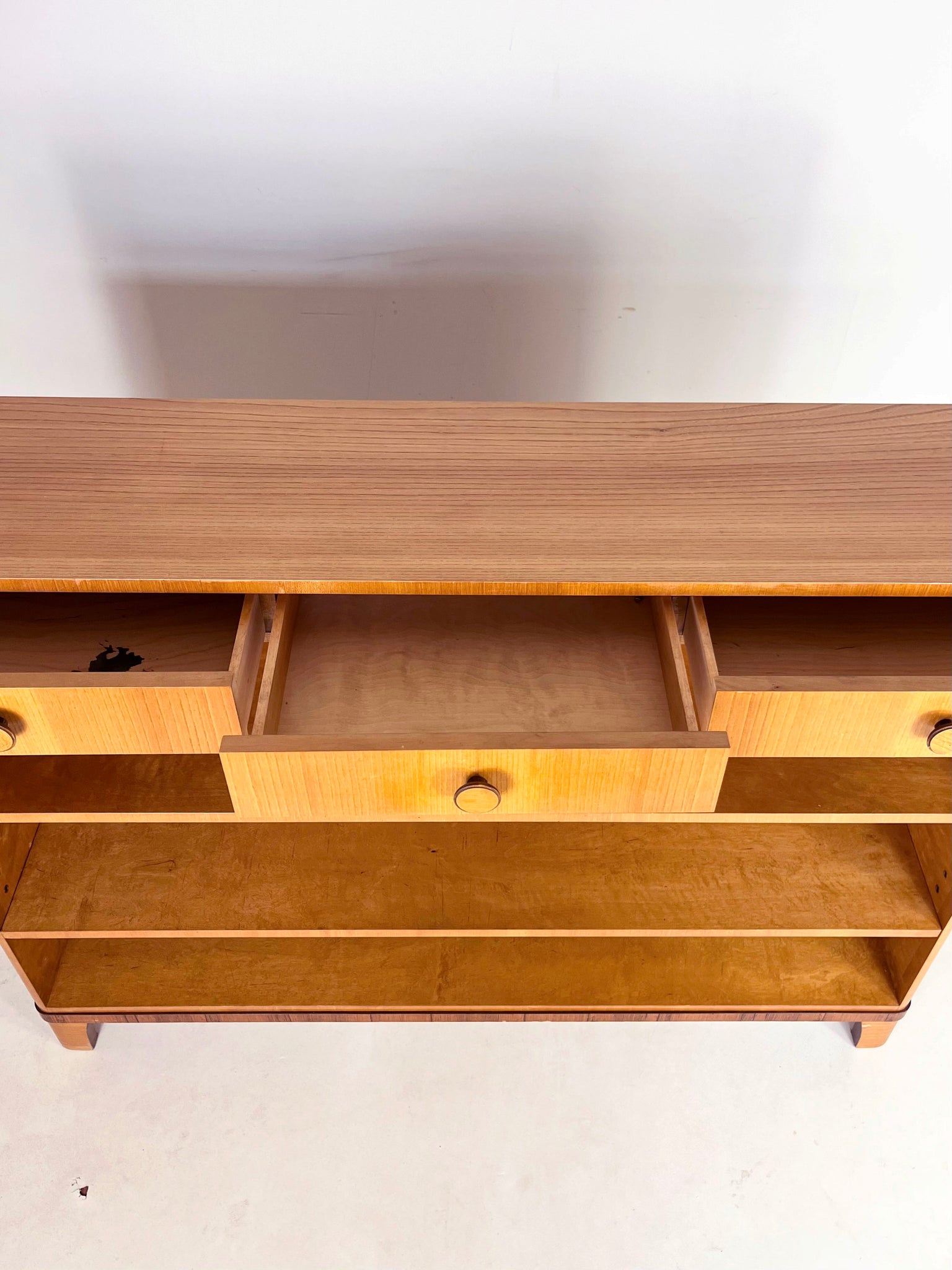 Beautiful Swedish piece of furniture from the 1930s or 1940s, with carefully crafted and refined details. The cabinet is made of birch and pine veneer, with a solid wood interior. The shelves are adjustable.