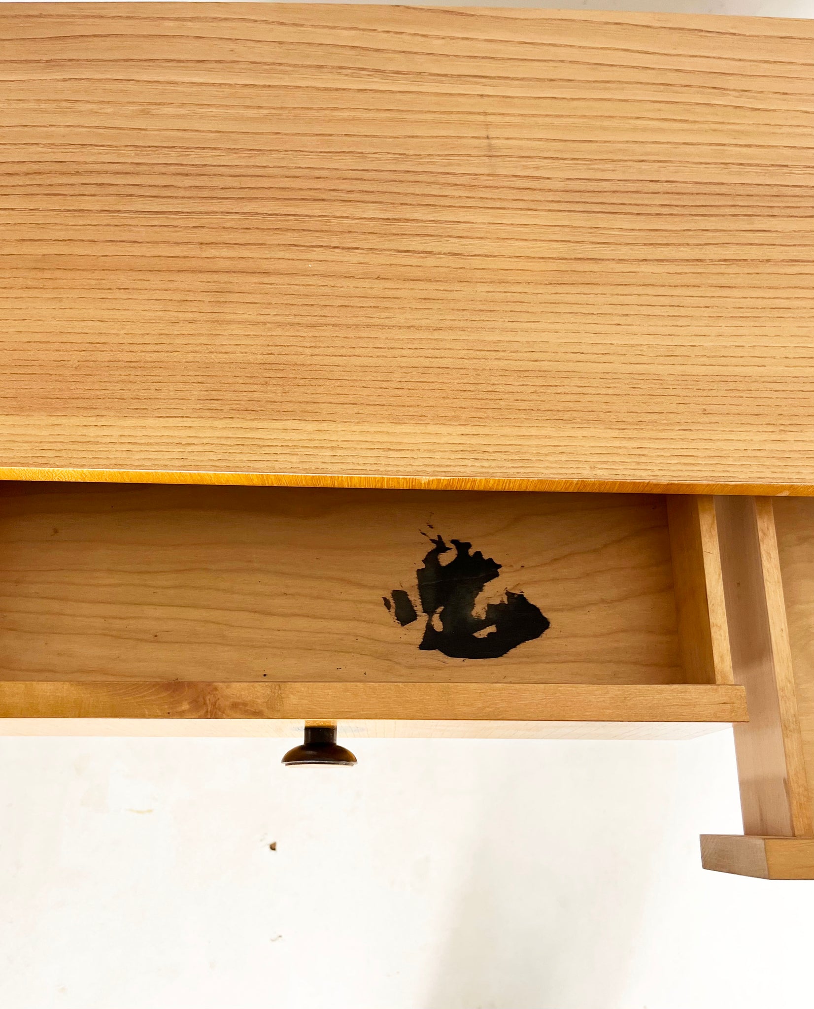 Prachtig meubel uit Zweden, daterend uit de jaren ’30 of ’40. De details zijn zorgvuldig uitgewerkt en verfijnd. De kast is vervaardigd uit berken- en grenenfineer, met een binnenkant van massief hout. De planken zijn verstelbaar.