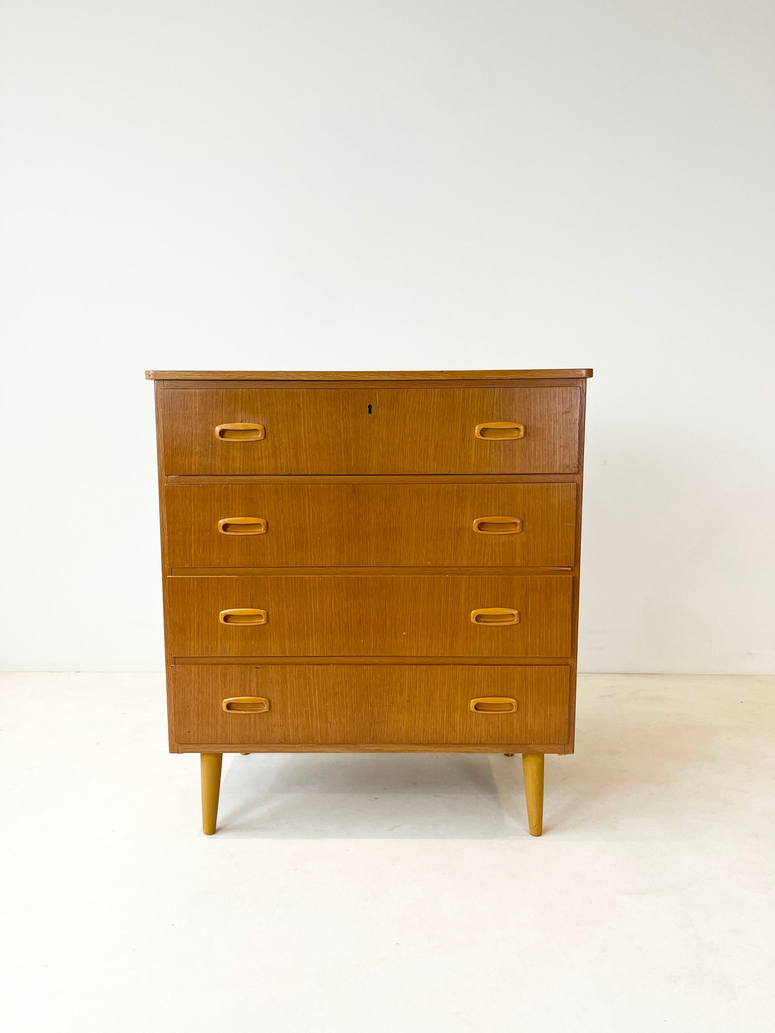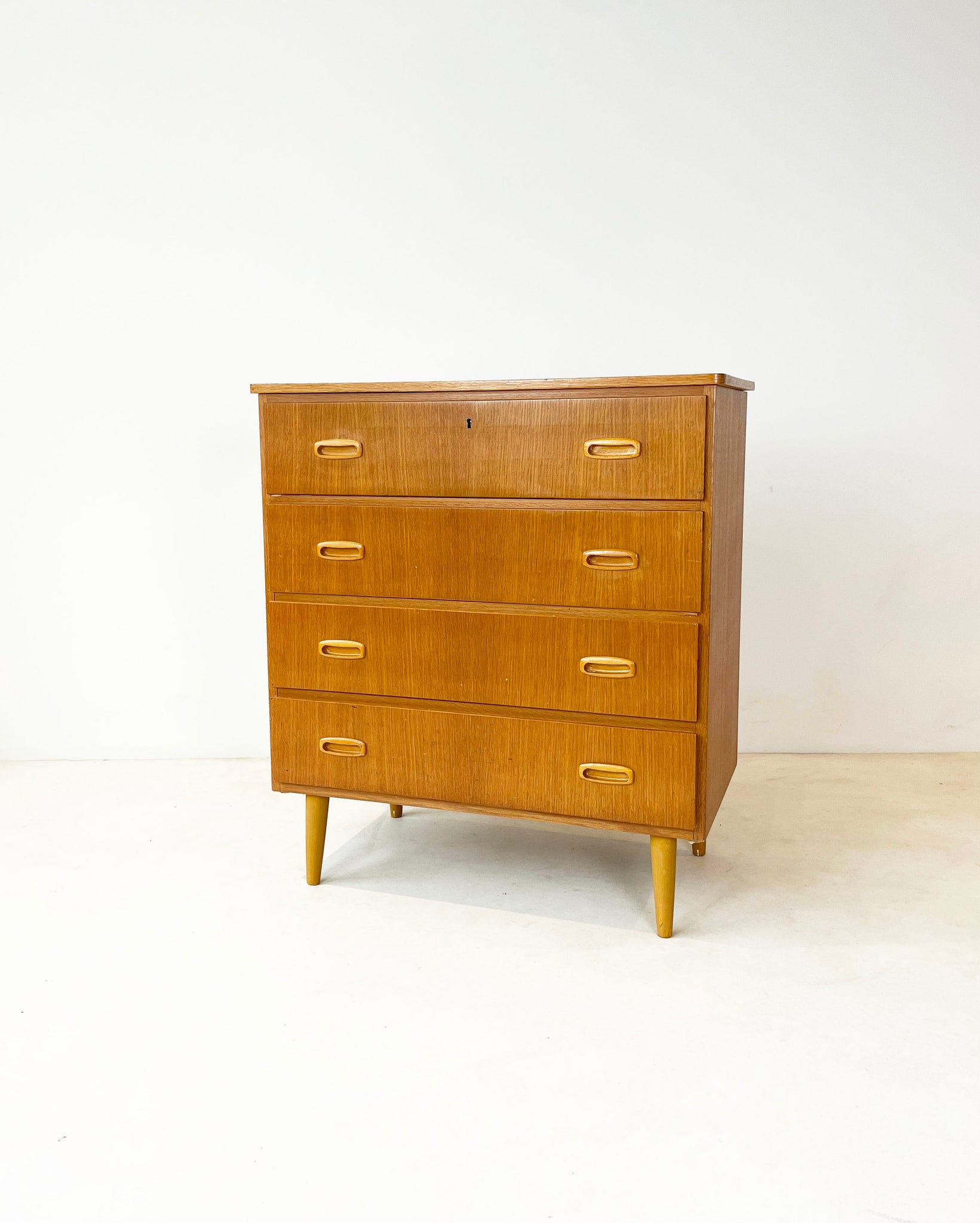 Prachtige klassieke Scandinavische vintage eiken ladekast / commode. In goede staat.