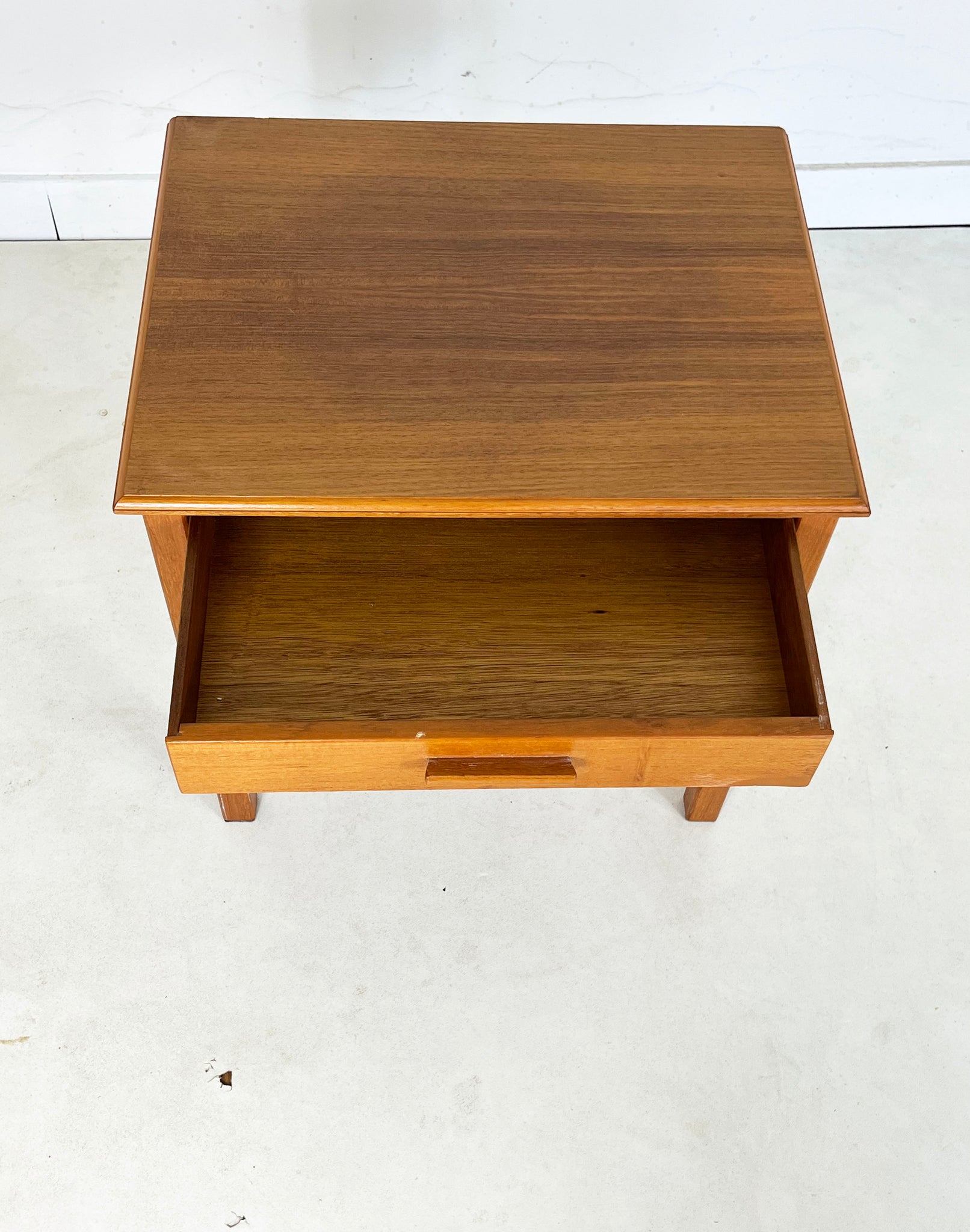 Set van 2 prachtige teak nachtkastjes uit Zweden. Professioneel gerestaureerd, stabiel en stevig. Eén van de lades heeft een kleine reparatie (zie foto’s), die in het echt nauwelijks opvalt.