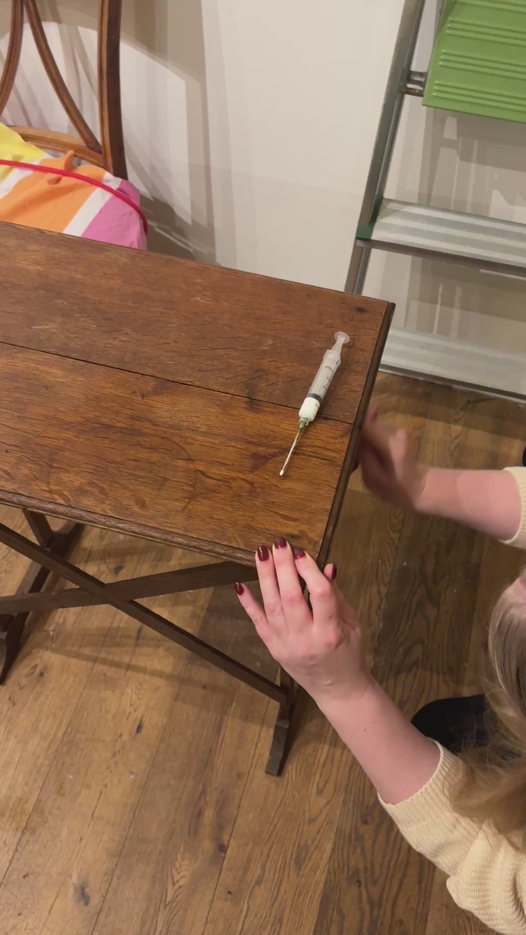 A small, manageable piece of vintage wooden furniture that you can easily carry—such as a coffee table or nightstand. Look for something with stains, scratches, or veneer damage—it’s very rewarding to see the transformation after your restoration work!